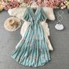 Damen Sommer Sexy V-Ausschnitt Taille Lange Chiffon Blumen Strandkleider