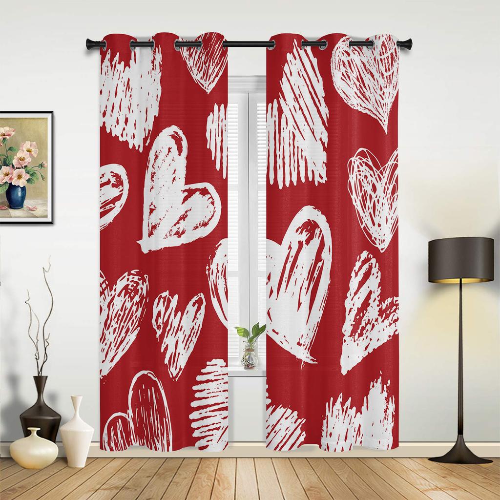 Fenstervorhänge mit handgezeichneten Motiven zum Valentinstag, für Wohnzimmer, Schlafzimmer, moderne Jalousien, Vorhänge für die Küche
