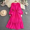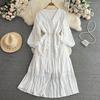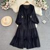 Solide Urlaub V-Ausschnitt Casual Süße Frauen Mode Elegante A-Linie Party Weibliche Chic Vestido Laterne Ärmel Böhmischen Grünen Kleid