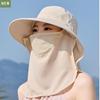 Sommer Sonnenhut mit großer Krempe Schal Abnehmbare Gesichtsmaske Koreanische Mode UV Fischerhut mit Zopfloch Mesh Dünne Gesichtsbedeckung Visiere Outdoor Angelhut