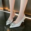 Neue Damen High Heels Mode Strass Spitz Quadratische Schnalle Stiletto Hochzeitsschuhe Casual Damen Slip on Mary Jane High Heel