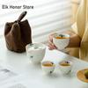 Reines handbemaltes Schmetterlingsorchideen-Teeservice-Set Zen 1 Kanne 3 Tassen Haushaltstee-Brühkessel Tassen Outdoor-Picknick-Tragetasche Basteln