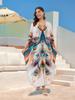 EDOLYNSA Bohemian Chic Gedruckt Lose Kaftan 2024 Sommer Langes Kleid Frauen Beachwear Badeanzug Cover Up Urlaub Casual Robe Q1638