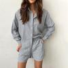 Blau gestreiftes Revershemd aus Baumwolle mit langen Ärmeln und Hosenanzug, Sommermode, Damenbekleidung
