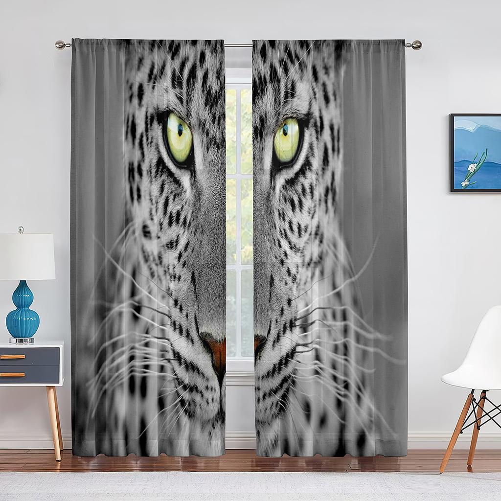 Leopard Safari Gepard Wildtier Thema Muster Tüll Vorhänge für Wohnzimmer Schlafzimmer Transparent Durchsichtig Voile Fenstervorhang