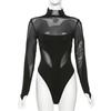 Mesh Splicing Durchsichtige Sexy Bodysuits Damenmode Schlank Langarm Jumpsuit Damen Playsuits Skinny Mesh Patchwork Urlaub Skinny Strampler 24303