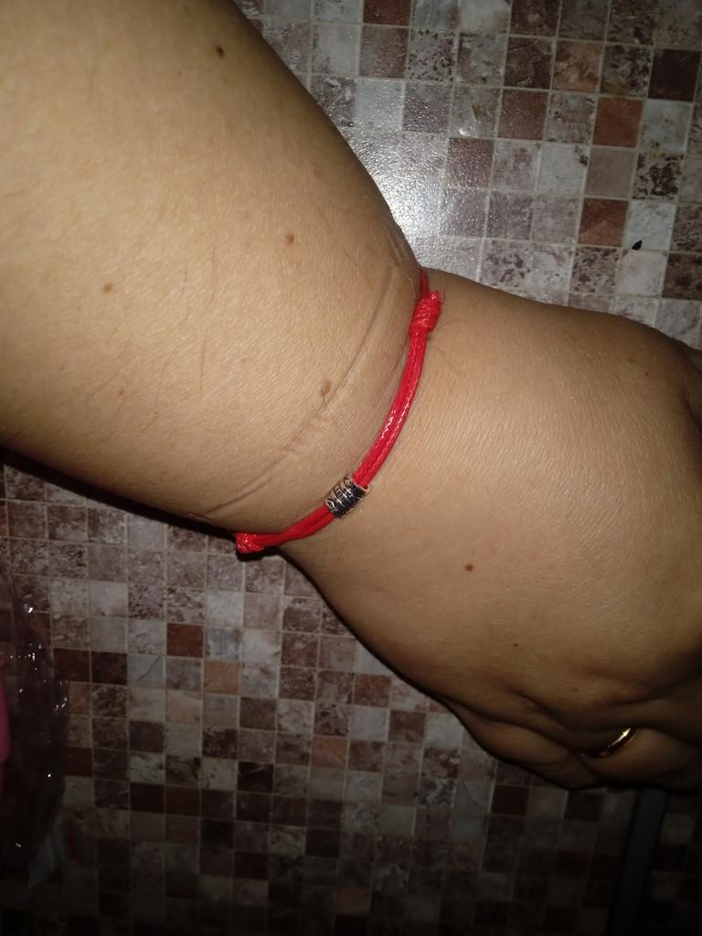 Alles entspricht der Beschreibung))) Scheint alles in Ordnung zu sein, aber es ist unbequem, es am Handgelenk zu tragen. Der Faden ist seidig und man muss es ständig zurechtrücken.