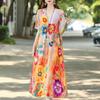 Übergröße Damenkleid, schlichte Mode, böhmisches langes Kleid, Sommer, kurzärmelig, Rundhalsausschnitt, bedruckte Kleider