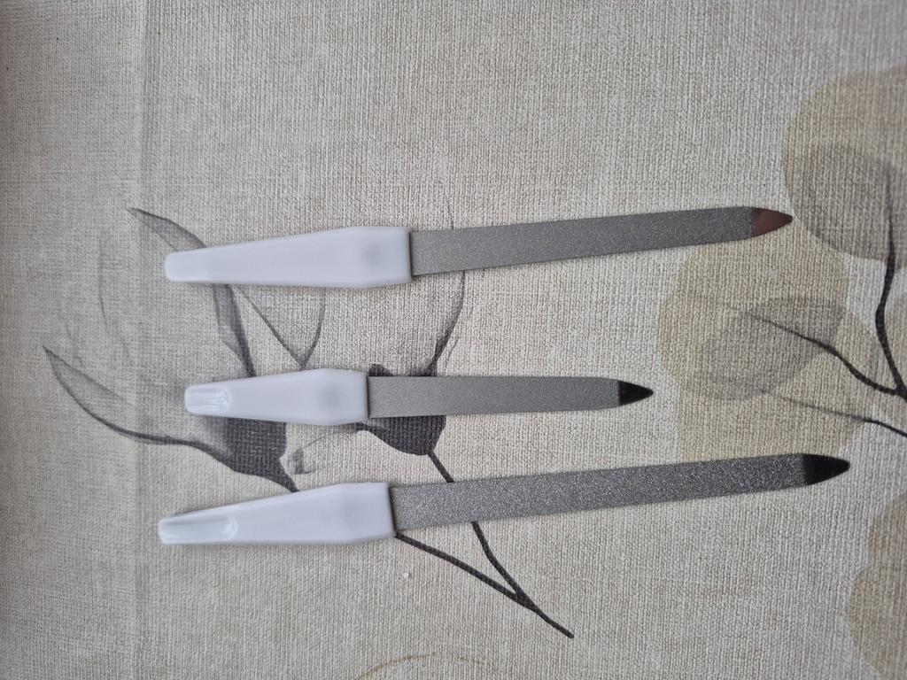 Nagelfeile ✨ Es gibt drei verschiedene Modelle. Ich habe aus persönlicher Vorliebe das längste und dünnste bestellt, aber alle funktionieren gleich gut.. Sie sind aus Metall, sehr gut, aber gleichzeitig leicht flexibel für ein besseres Feilen der Nägel.. Perfekt für Maniküre. Der Griff ist starr, aus Kunststoff, sehr bequem, damit er nicht rutscht. Die Sendung kam sehr schnell in weniger als einem Monat an und mit Sendungsverfolgung bis zur Zustellung.
