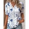 Bluse mit Spitzendetail und Blumendruck in Übergröße, elegante Bluse mit V-Ausschnitt und strukturierten Kurzarm für Frühling und Sommer, Damenkleidung in Übergröße
