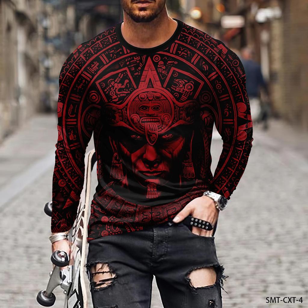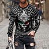 Herren 3D-Druck Herbst Herren O-Ausschnitt T-Shirt Casual Langarm Großer Pullover Mode Top Street Kleidung Herrenbekleidung