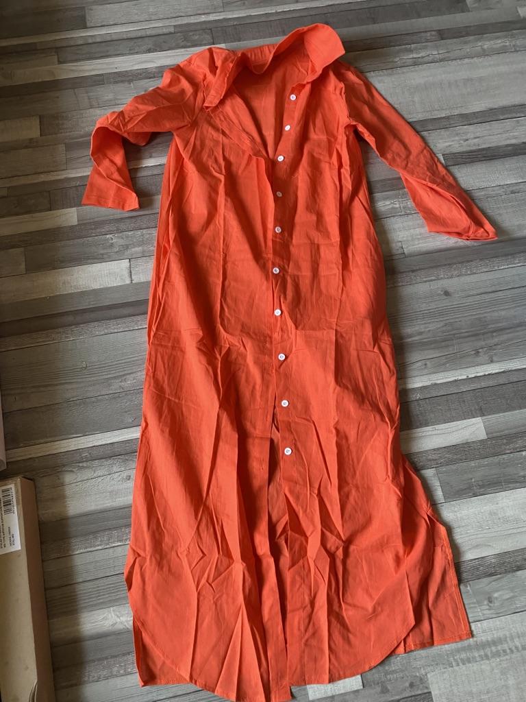 Interessantes Hemdkleid. Der Stoff ist dicker, als er auf dem Foto erscheint. Der Stil ist geradliniger. Es gibt kein Aufflackern. Sieht elegant aus.