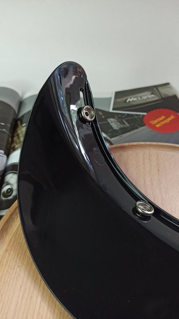 Sonnenblende für Motorradhelm ✅ Antibeschlag-Visier schützt vor UV-Strahlen. Hergestellt aus ABS-Kunststoff mit schwarz glänzender Textur. Es hat drei Verschlüsse – Metallknöpfe. Größe 15 × 8 cm. Sehr hohe Qualität 👍💯