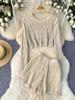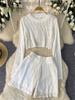 American Senior Simple Style Zweiteilige Sets O-Ausschnitt Hohles Oberteil Elastische Taille Passform Schicke schmale Shorts Damen Solide Strick-Freizeitanzüge