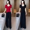 Werten Sie Ihren Stil mit diesem schicken Damenanzug auf, der ein einfarbiges Design und einen lässigen, schlichten Stil aufweist und sich perfekt sowohl für den Alltag als auch für die Fahrt zur Arbeit eignet.. Das Set besteht aus einem elastischen Kurzarmoberteil und einer Hose mit weitem Bein, die den meisten Körperformen schmeichelt und Ihre einzigartige Persönlichkeit unterstreicht..