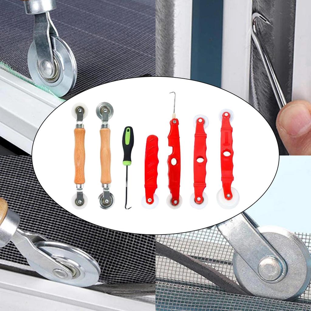 - 【Produktname】 7-in-1-Werkzeugsatz für Fenstergitter-Spline-Rollen, 7-teiliges Reparaturset für Fliegengittertüren