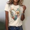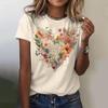 Simple Crew Neck T-Shirts Regular Oversized Love Floral Print Women's T-Shirt Casual Short Sleeve Tops Harajuku Design Clothing