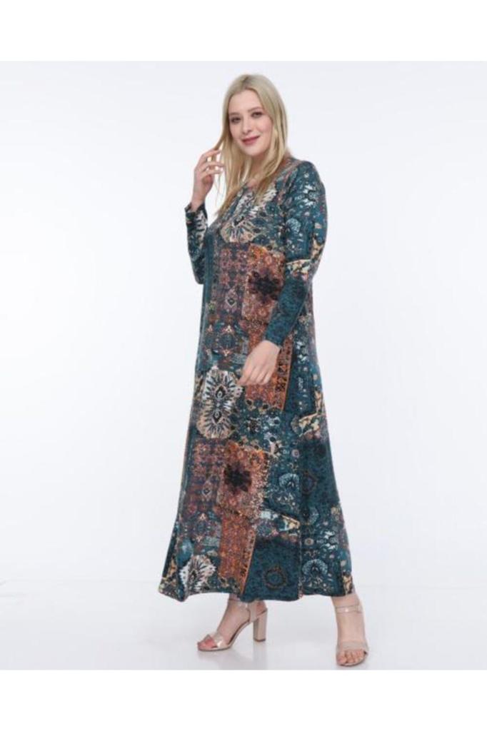 Damen Blau Grün Ethnisches Muster Übergröße Kleid