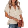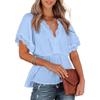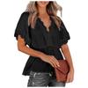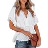 Damen-Shirts mit Spitze, V-Ausschnitt, einfarbig, Rüschensaum, lockere Oberteile mit kurzen Ärmeln