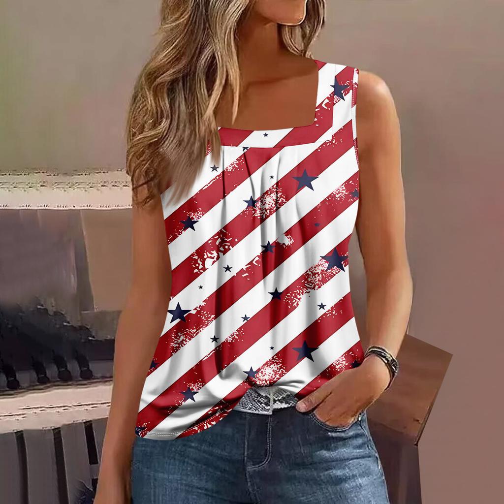 Ärmelloses T-Shirt für Damen im Sommer mit plissiertem, lockerem Schnitt und quadratischem Ausschnitt, lässiger Streetstyle für den Alltag