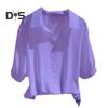 Das einzigartige Design zeichnet sich durch eine klassische Volltonfarbe mit Revers, kurzen Ärmeln und Knopfverzierung aus (nicht funktionsfähig), strahlt einen modischen OL-Pendlerstil aus.