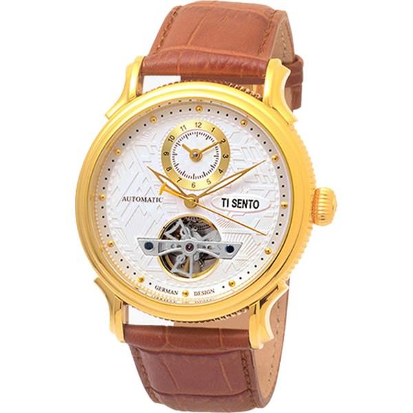 [Ticento]Herren Automatikuhr Leder TS50011GD DUAL, Koreanische Luxusuhren