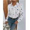 Damen Bluse Modisch Bedrucktes Langarmshirt Schmetterling Bedrucktes Reversshirt