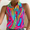 BITCED Damen Sommer Casual Fashion Trägerloses Ärmelloses Abstrakter Druck Damen Shirt