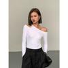Mode Schrägen Kragen Off-schulter Langen ärmeln T-shirts Frauen Frühling 2024 Neue Solide Slim Fit Crop Top Sexy aushöhlen Tees Shirts
