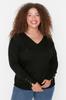 Damen Stil Übergröße Altrosa V-Ausschnitt Strickware Pullover mit Knopfdetails