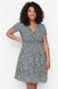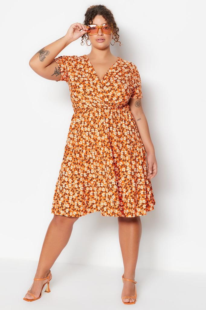 Damen Stil Übergröße Orange V-Ausschnitt Strickkleid mit Blumenmuster