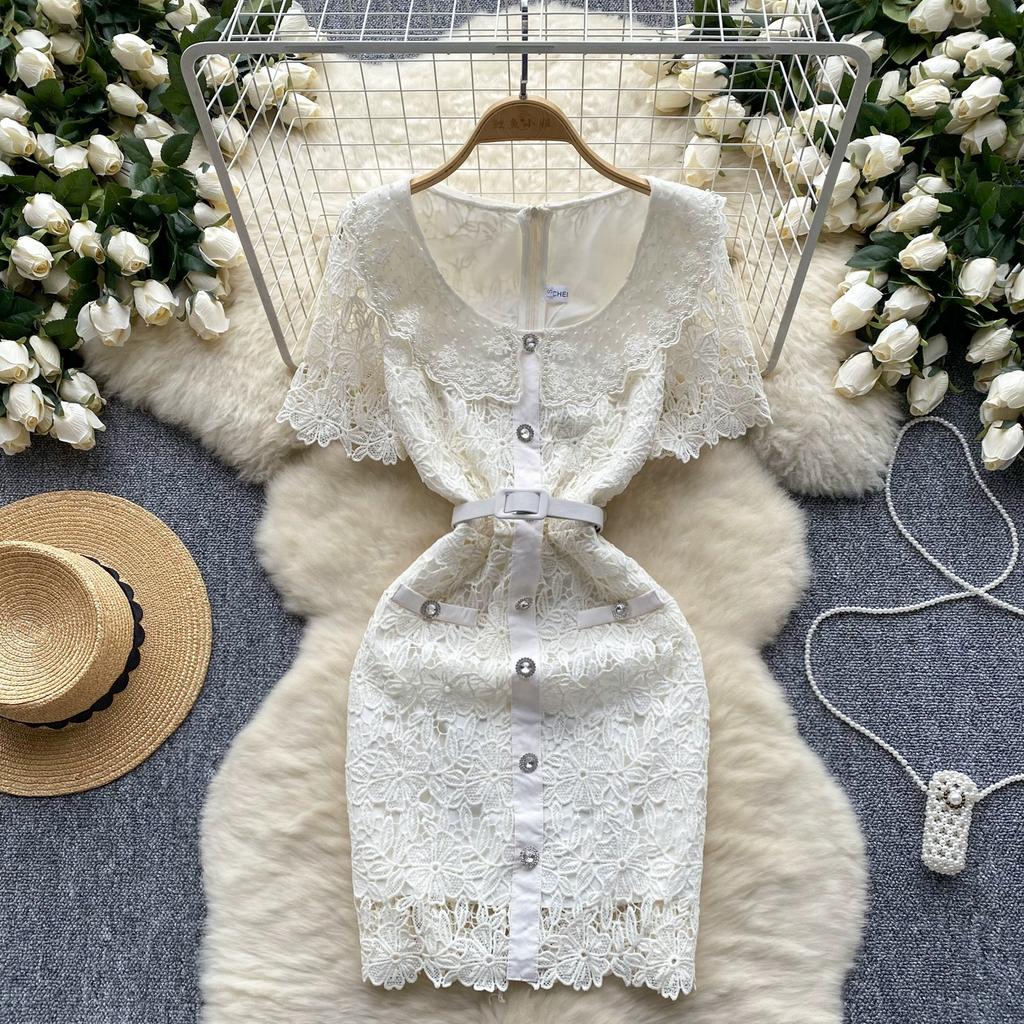 Sommer Frauen Elegante Spitze Häkeln Stickerei Blume Schlank Bodycon Mini Kurze Büro Arbeit Party Kleider