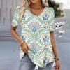 Trendige Kurzarm Sommer 3D Schneeflocken-Print V-Ausschnitt Tops Damenbekleidung Mode T-Shirts Shirt Sportbekleidung Streetwear Damen Bluse