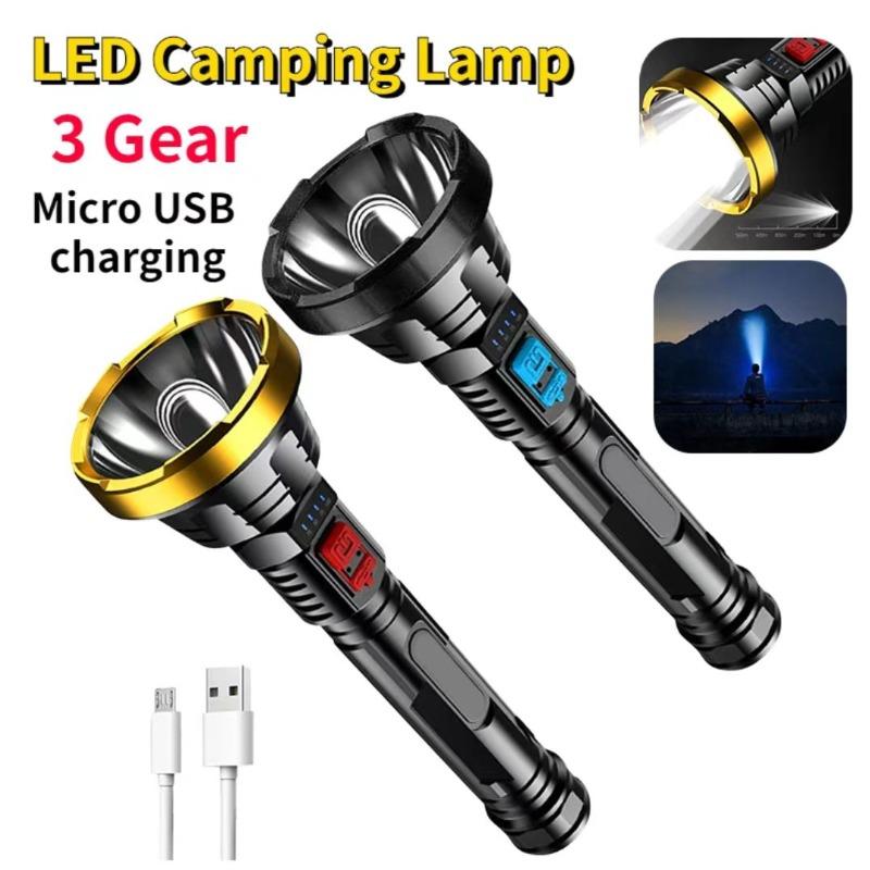 30w Big Strong Light LED Flashlight USB Rechargeable Tactical Hunting Camping Lantern Built In Battery Flash Light Power Display