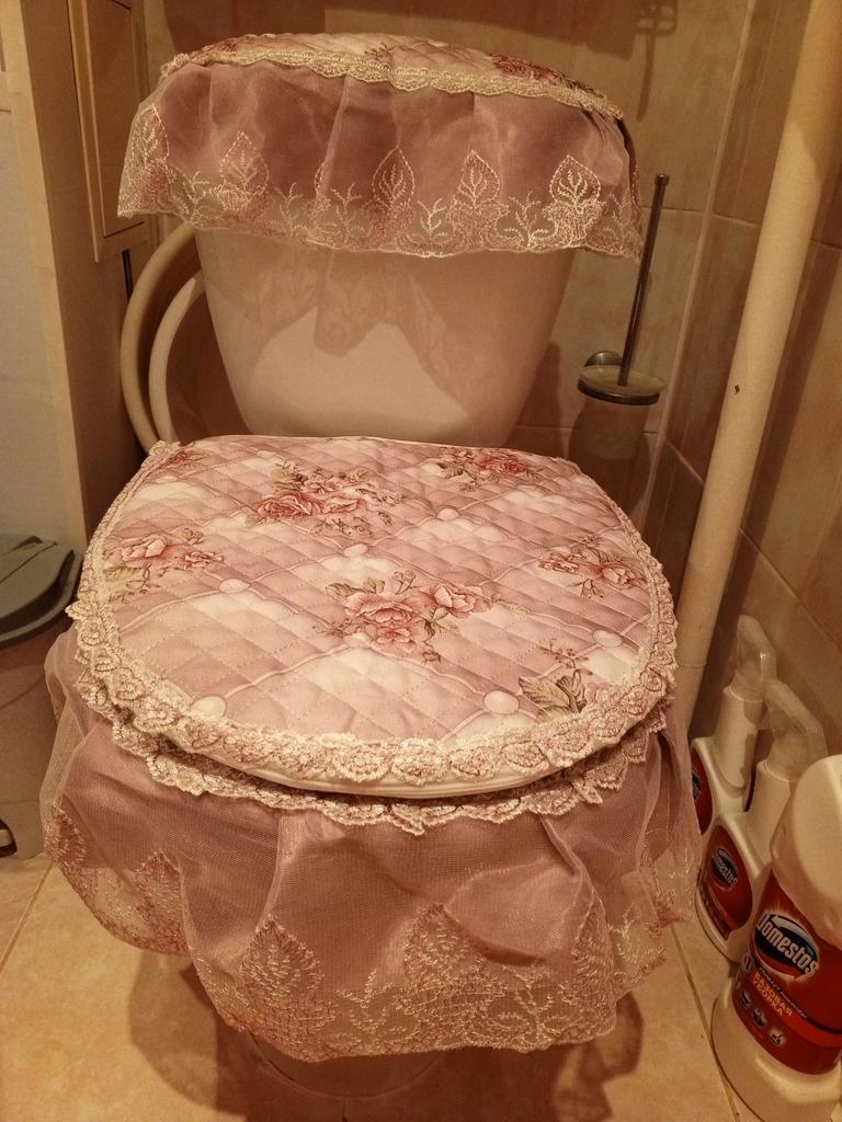 Chenille Toilette dreiteiliges Set Garten Spitze Stoff Reißverschluss Toilettensitzkissen Toilettensitzbezug Ringbezug