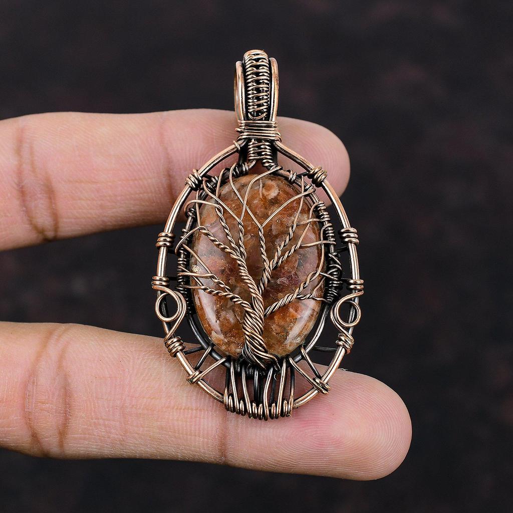 Baum des Lebens Sonnenstein Anhänger Kupferdraht gewickelt Anhänger handgemachter Anhänger Baum des Lebens Schmuck Edelstein Anhänger Kupfer Schmuck Geschenk für Sie