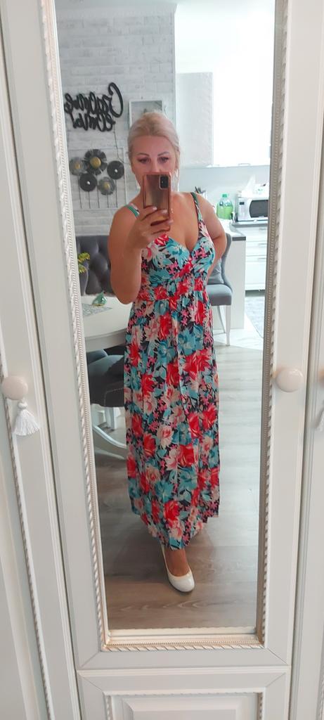 Süßes Sommerkleid, Maxikleid in tollem Blumenprint 👌👗 Lieferzeit 🌞: 18 Tage nach Deutschland. ♻️Lieferumfang: Im Lieferumfang erhalten ist ein Kleid 👗in entsprechender Größe und Farbe. Es gibt das Produkt in 4 verschiedenen Farben zur Auswahl. Verfügbar ist es in den Größen von S bis XXL. Ich habe mir das Produkt in der Größe S in Weiß bestellt und das Kleid 👗 passt mir super und die Farbe ist genau so wie abgebildet. 🤗🤗🤗👍 Normalerweise trage ich Kleidergröße 36( S).,ich wiege 55kg auf 167cm verteilt. Körbchengöße 75B. Das Kleid fällt größenentsprechend aus. 🌞Qualität ♻️: Das Kleid ist leicht und schwingt schön. Der Stoff ist sehr angenehm auf der Haut,obwohl es Polyester ist. ✅️Zur Materialzusammensetzung: 100% Polyester. Ich finde das KLEID 👗 sehr schön 🔝🔝🔝🔝🔝 Mir hat es sehr gefallen. 😘😘🔝Perfekt für den Sommer und Urlaub!👍👍👍👍👌 ✳️Zusammenfassung ✳️: Ein wunderschönes Maxikleid in Blumenprint, das man in seiner normalen Größe bestellen muss . Ich empfehle das Produkt sehr sehr gerne weiter.,5 Sterne 👍👍👍👍! Danke Joom und dem Verkäufer Hi Dawn!!!🤗🤗🤗👗👍Und danke auch für ein kleines Geschenk,für das Haarband.