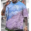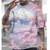 Herren-T-Shirt im japanischen Stil mit Fujiyama-Kirschblüten-Aufdruck, lässiges, lockeres, kurzärmeliges T-Shirt, übergroßes Herren-Bekleidungsoberteil