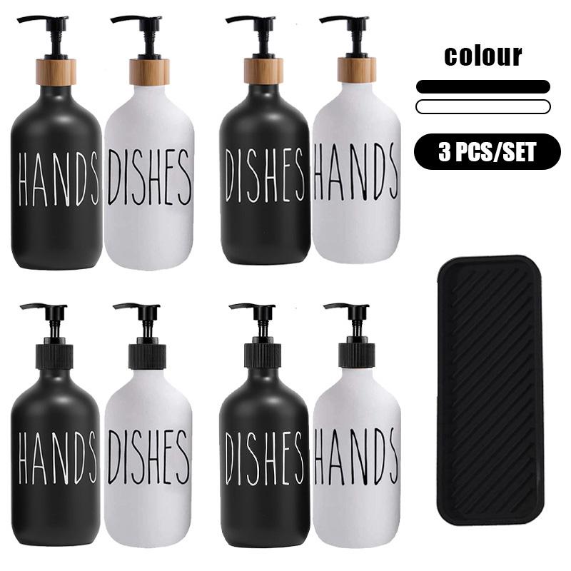 500 ml weiß-schwarzes Spülmittelspender-Set für die Küchenspüle, Handseife und Spülmittel-Vorratsflasche, nachfüllbare Flaschen