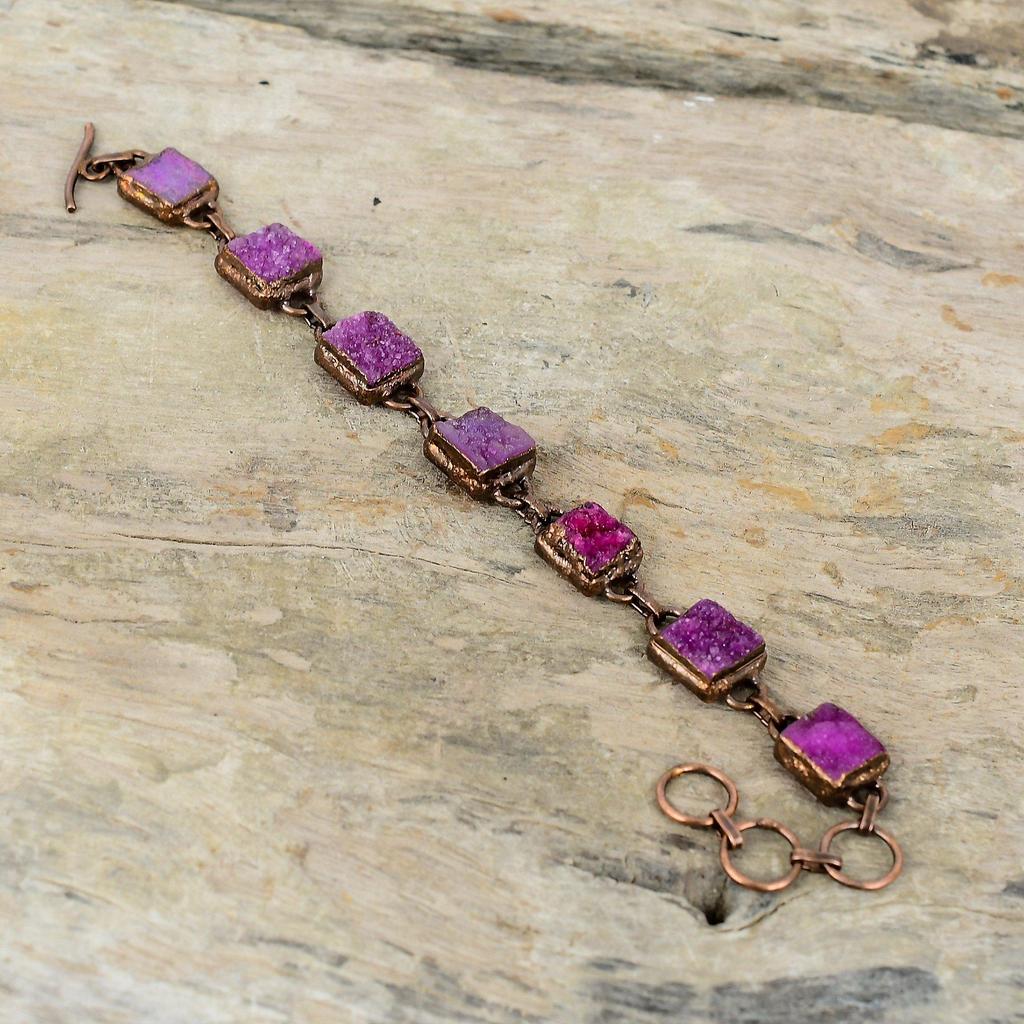 Pink Druzy Bracelet Electroformed Copper Bracelet Adjustable Chain Bracelet Electroformed Handmade Jewelry Gemstone Bracelet Gift For Mother