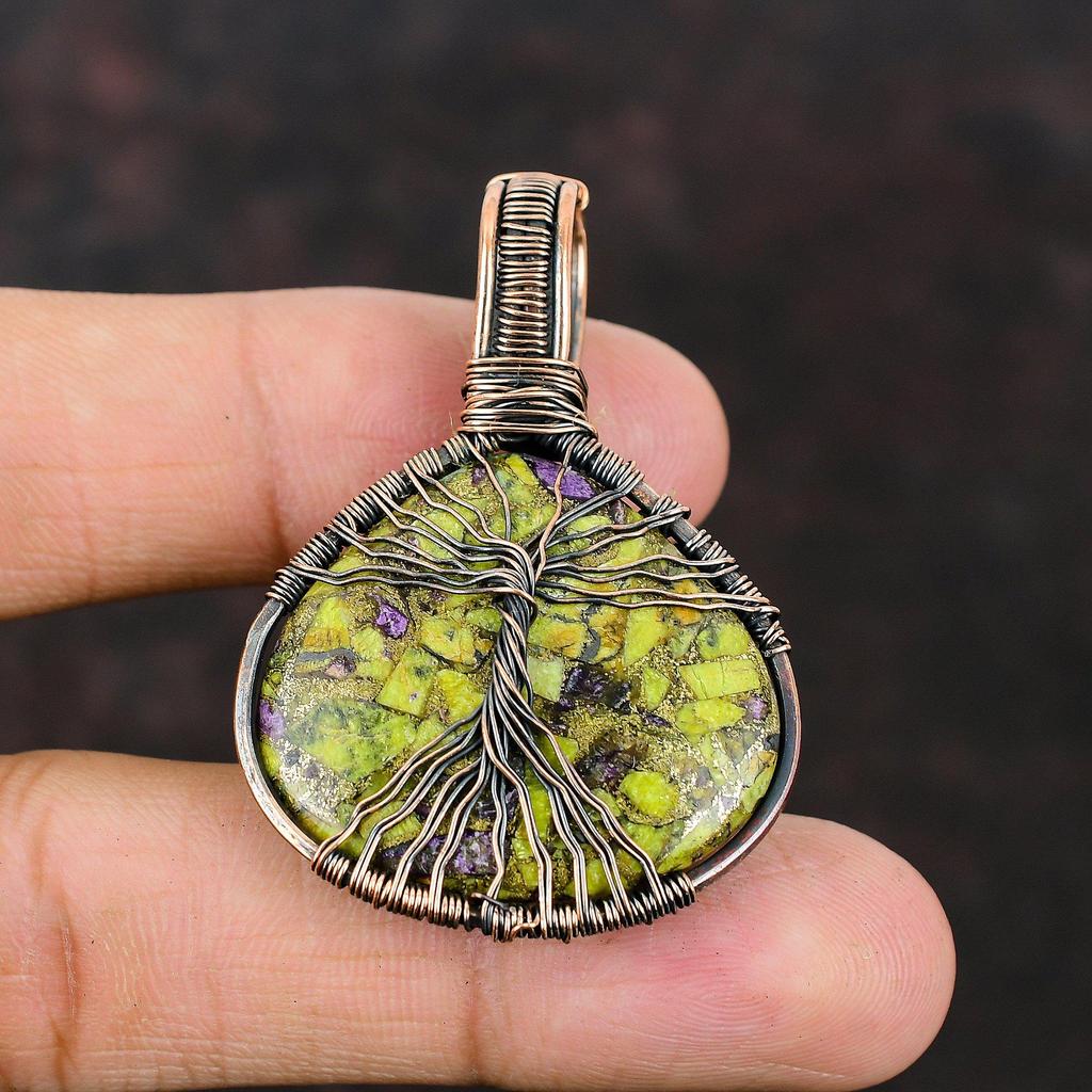 Tree Of Life Stichtite Gemstone Pendant Copper Wire Wrapped Pendant Copper Wire Jewelry Gift For Him Handmade Pendant Tree Of Life Jewelry