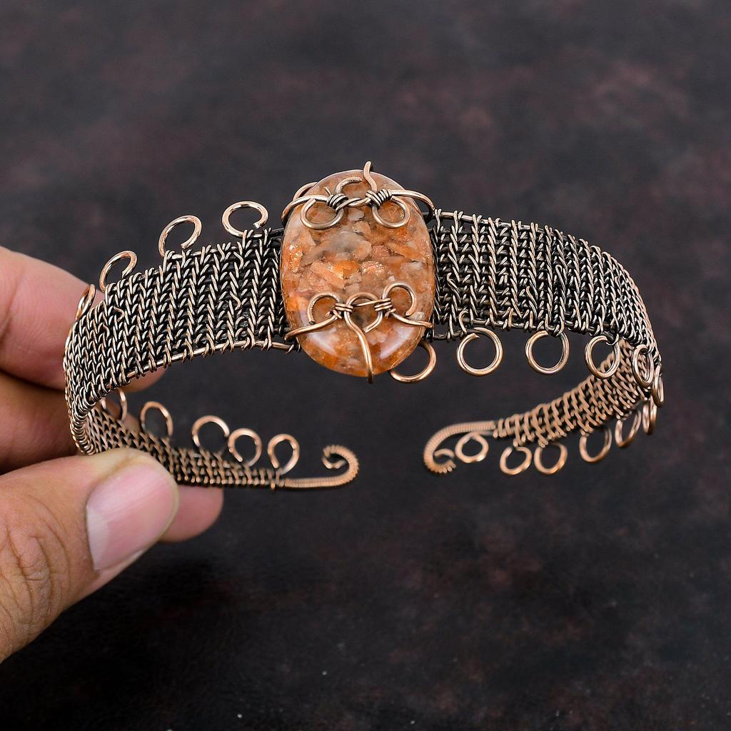 Sunstone Bangle Copper Wire Wrapped Cuff Bracelet Adjustable Bangle Sunstone Gemstone Jewelry Handmade Cuff Copper Jewelry Anniversary Gift