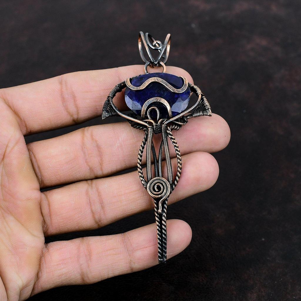 Facettierter Blauer Saphir Anhänger Kupferdraht umwickelter Anhänger Edelsteinanhänger Geschenk für besonderen Anlass Handgefertigter Anhänger Sehr hübscher Kupferschmuck