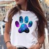 Damen T-Shirt mit Hundepfoten-Print, kurzärmelig, lässig, bedruckt