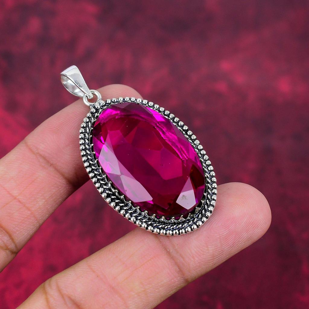 Rosa Amethyst 925 Massiv Sterling Silber Anhänger, Handgefertigter Edelstein Schmuckanhänger, Für den Gedenktag