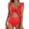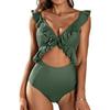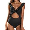 【Merkmale und Designs】 Einteiliger Badeanzug mit tiefem V-Ausschnitt und Volant, Falbala, Cut-Out, gepolstert, Bindeband vorne; Verstellbare Schultergurte auf der Rückseite, rückenfrei, mit Schnürung auf der Rückseite, einteiliger Monokinis-Badeanzug