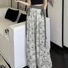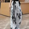 Mühelos schicke Hose mit weitem Bein und Pflanzendruck – lockere Passform, Bindegürtel in der Taille, kontrastierender Besatz – perfekt für Frühling und Herbst – Damenmode