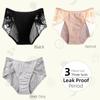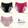 1/3 Stück Damen-Physiologische Unterhosen mit mittlerer Taille, 3-lagig auslaufsicher, Spitzen-Damenunterhosen, Bequeme Atmungsaktive Menstruations-Damenunterhosen