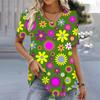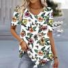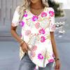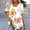 Frühling Vintage Damen V-Ausschnitt Kurzarm T-Shirt für Frauen Lose Tops 3D-Druck Sommer Tees Shirts Übergroße weibliche Kleidung