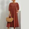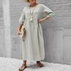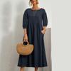 Fashion Solid Laterne Ärmel Sommerkleid Frauen Vintage Lose Baumwolle Leinen Freizeitkleid Frau Tasche Büro Dame Kleider Plus Größe 24196